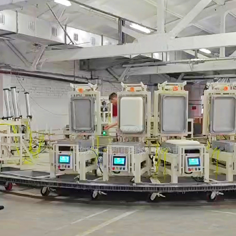 這是一套聚氨酯枕頭發(fā)泡生產(chǎn)線,包括一套軟泡聚氨酯高壓發(fā)泡機(jī),一個直徑9.5米的轉(zhuǎn)盤線,可放置28個工位,一套灌注機(jī)器人和一套脫模劑機(jī)器人,實現(xiàn)智能自動化高效生產(chǎn)。團(tuán)隊與客戶合作緊密,設(shè)備安裝、測試和調(diào)試順利完成,贏得客戶滿滿贊譽(yù)。