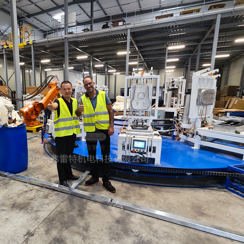 這是弗雷特生產的汽車座椅轉盤生產線,感應機械臂澆注,自動開合模具,效率高,生產簡便。全自動機械臂澆注,澆注準確,發(fā)泡穩(wěn)定,生產效率高,機械臂能夠完成軌跡澆注的要求,簡單操作,可以減輕員工的勞力。