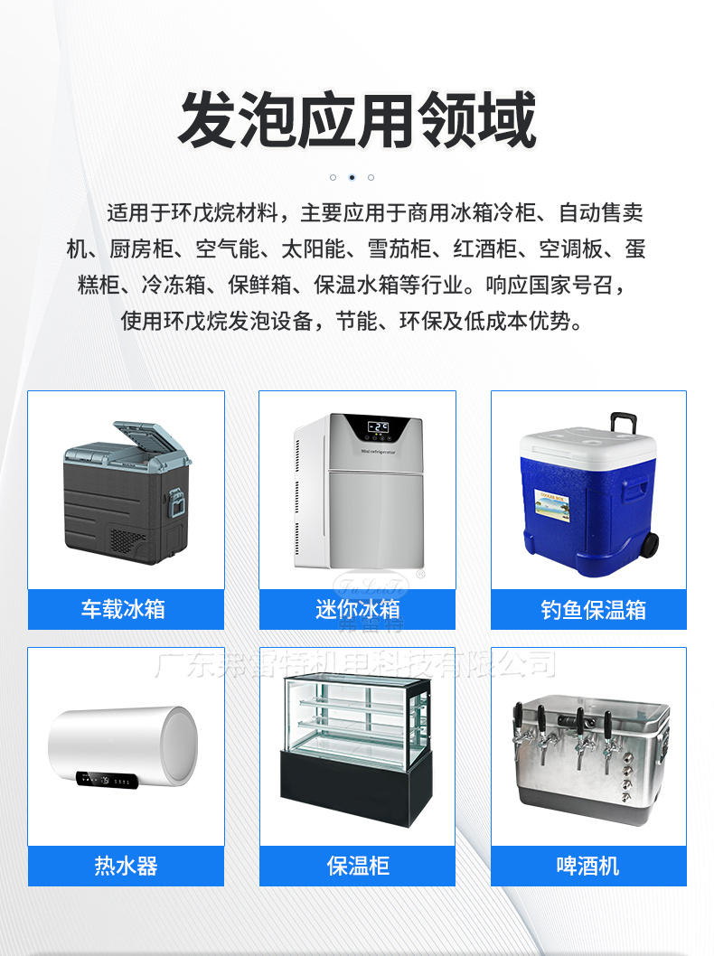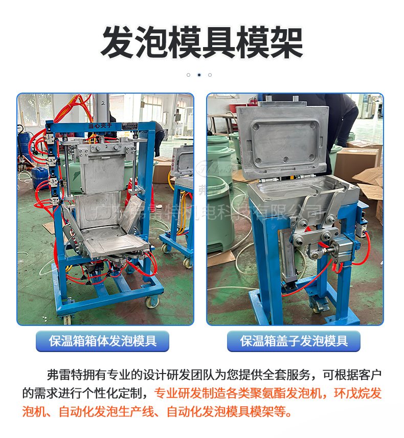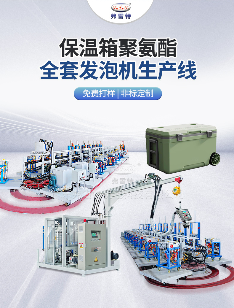 聚氨酯保溫箱自動化發(fā)泡機(jī)生產(chǎn)線。應(yīng)用領(lǐng)域包括車載保溫箱、釣魚保溫箱、小冰箱等等。聚氨酯發(fā)泡機(jī)生產(chǎn)線配套了弗雷特環(huán)戊烷發(fā)泡機(jī),設(shè)置了安全防靜電圍房,無氟發(fā)泡及環(huán)戊烷安全檢測,警報及處理系統(tǒng),令環(huán)戊烷發(fā)泡機(jī)的使用變得更加安全和可靠。另外還搭配了發(fā)泡氣動開合模具模架,一鍵自動開合,節(jié)省人力,高效生產(chǎn)。