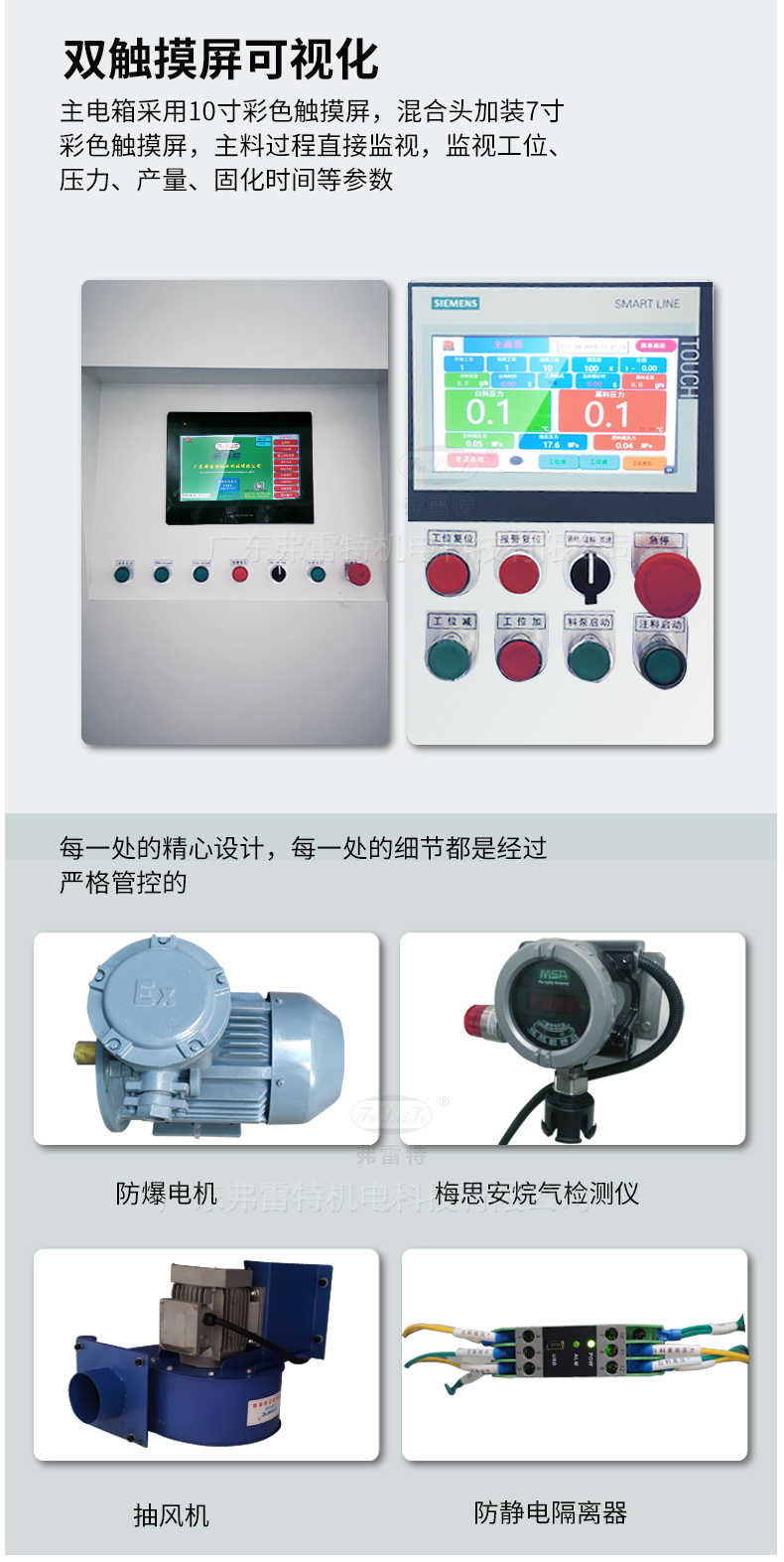 本系統采用自清潔、止逆、防濺粘、新型V型發泡槍,實現3次混合功能,結構美觀、操作方便。