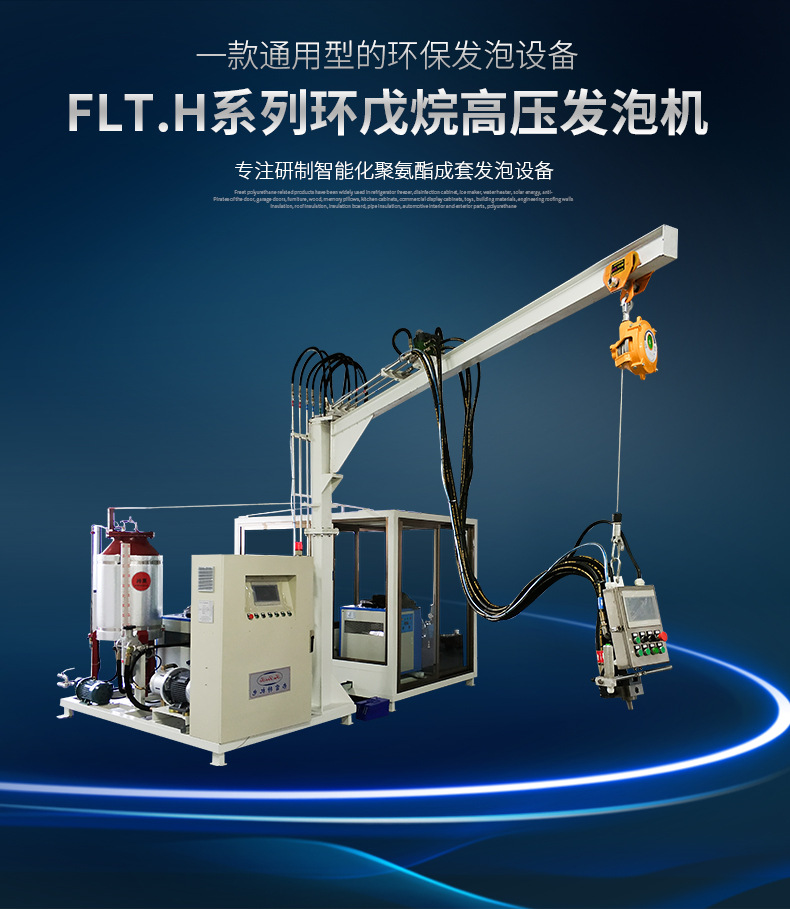 該系列發泡機型有FLT.H-06/12/28/55,環戊烷作為硬質聚氨酯泡沫的新型發泡劑,用于替代對大氣臭氧層有破壞作用的氯氟烴(CFCS),現已廣泛應用于生產無氟冰箱、冰柜行業以及冷庫、管線保溫等領域。無氟發泡及環戊烷安全檢測,警報及處理系統令環戊烷發泡機的使用變得更加安全和可靠,隨著蒙特利兒等公約規定的禁用ODS期限的臨近,CFCr和HCFCs類產品不久將被禁用,環戊烷將成為聚氨酯發泡劑領域的主角。因此,環戊烷發泡機用途相當廣泛,滿足市場需求,順應環保趨勢。