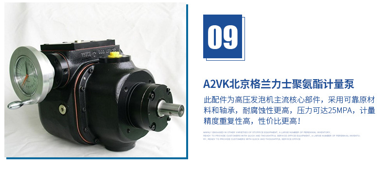 具有西門子PLC+雙變頻多功能安全裝置,38個智能自檢保護點,獨立防靜電房,烷氣濃度等級自動識別系統,自動2-3級抽風系統,西門子防爆電機,獨立導地裝置,槍頭引線靜電導出裝置等,外接2組獨立對比恒溫,12~100種噴灌定時定量控制,開槍溫度鎖定,故障自檢報警等,本系統采用自清潔/止逆/防濺粘/新型V型發泡槍(實現3次混合功能),結構美觀、操作方便。根據客戶實際情況,還可以一機雙槍使用,雙槍自動切換,變頻節能、應用自如,專為客戶量身訂做發泡完善系統。