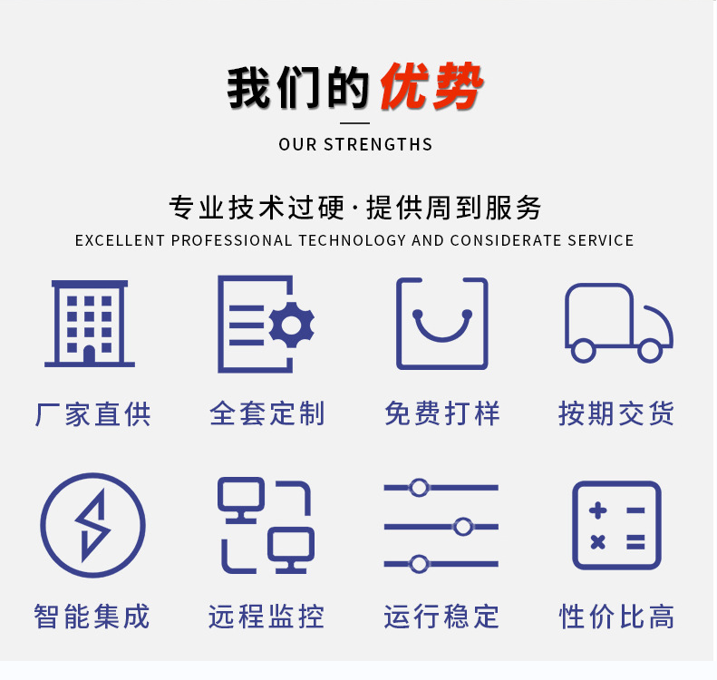 1、電氣控制: 采用以西門子PLC、施耐德配件為主的電氣控制系統(tǒng),全模塊化集成控制所有工藝流程,操作簡單,智能穩(wěn)定。