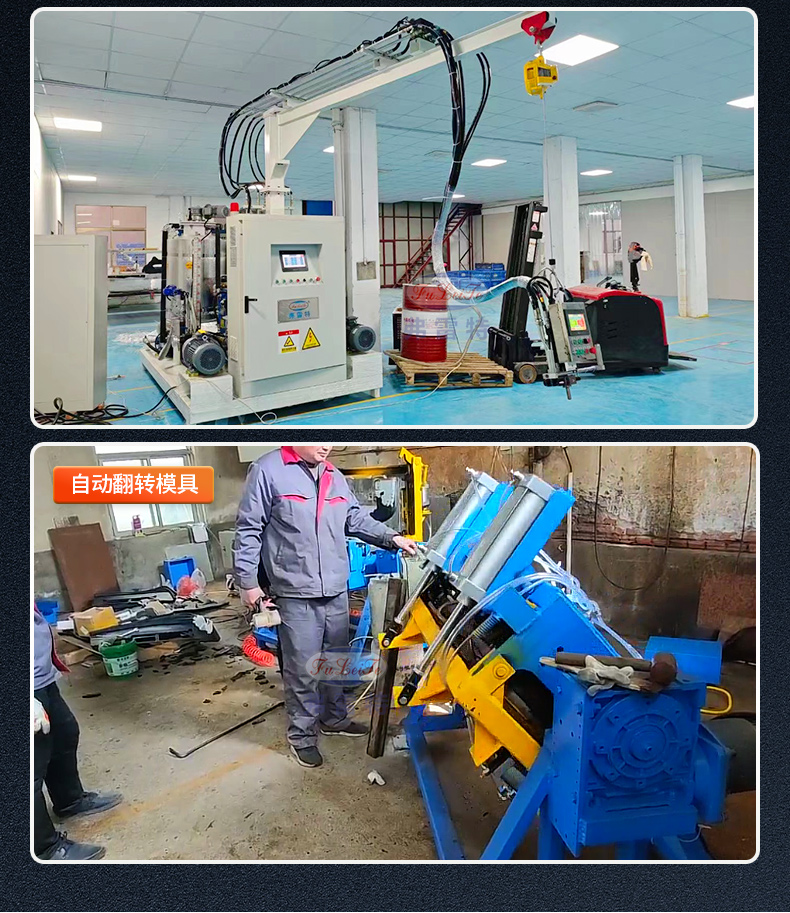將兩組份原料,分別儲存在兩個儲料罐中,通過兩臺高精度柱塞計量泵,輸送至混合槍頭,通過高壓對射讓物料充分混合,高壓碰撞,泡孔細膩,大大提高產品質量。