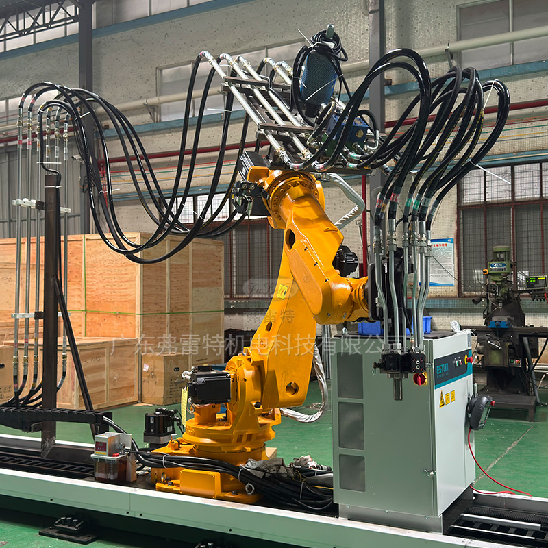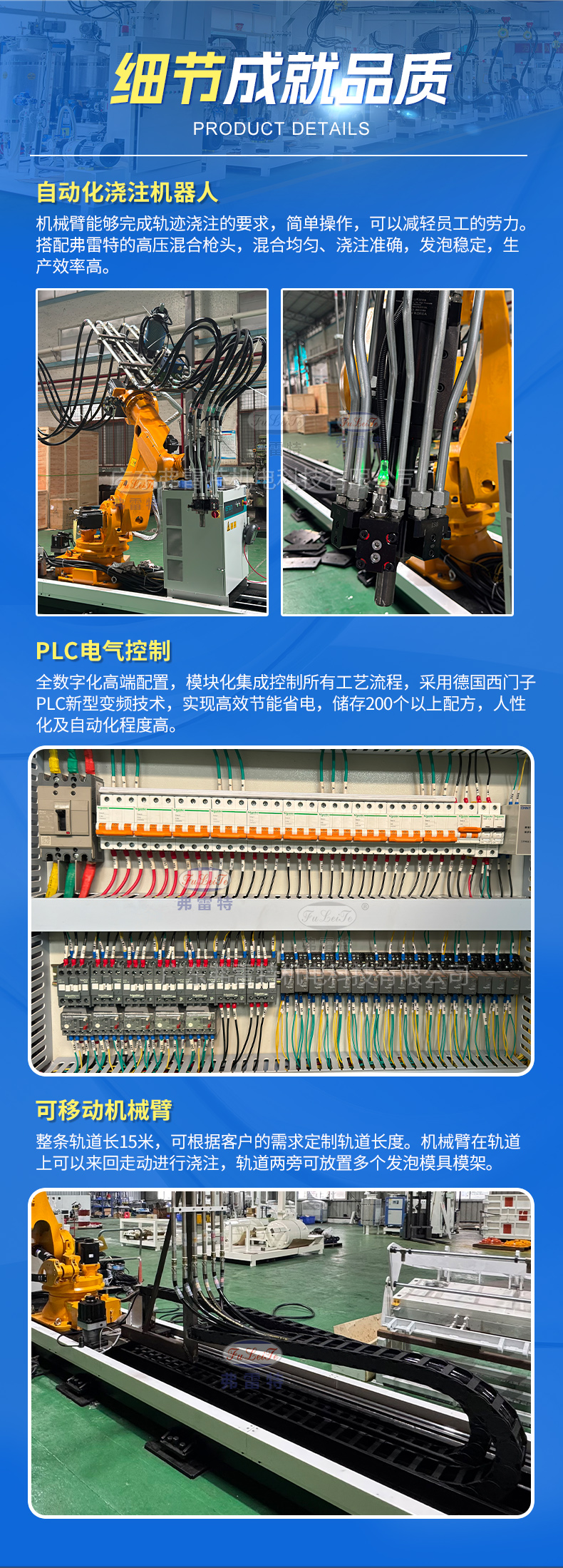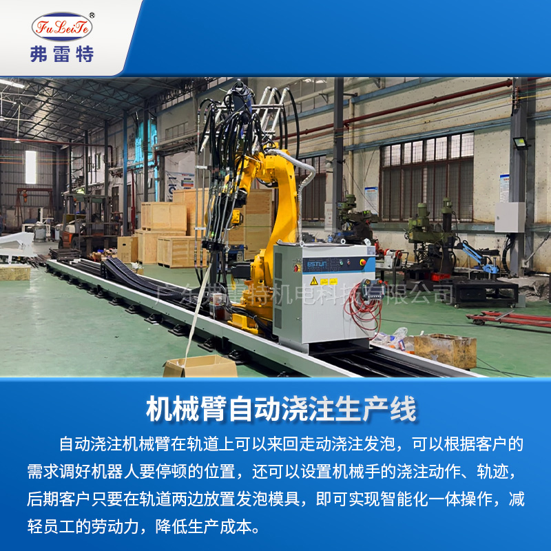 自動(dòng)澆注機(jī)械臂在軌道上可以來回走動(dòng)澆注發(fā)泡,可以根據(jù)客戶的需求調(diào)好機(jī)器人要停頓的位置,還可以設(shè)置機(jī)械手的澆注動(dòng)作、軌跡,后期客戶只要在軌道兩邊放置發(fā)泡模具,即可實(shí)現(xiàn)智能化一體操作,減輕員工的勞動(dòng)力,降低生產(chǎn)成本。弗雷特可根據(jù)客戶的需求進(jìn)行個(gè)性化定制,提供全套服務(wù),我們擁有專業(yè)的設(shè)計(jì)研發(fā)團(tuán)隊(duì)、生產(chǎn)團(tuán)隊(duì),歡迎需要的朋友聯(lián)系我們廣東弗雷特!