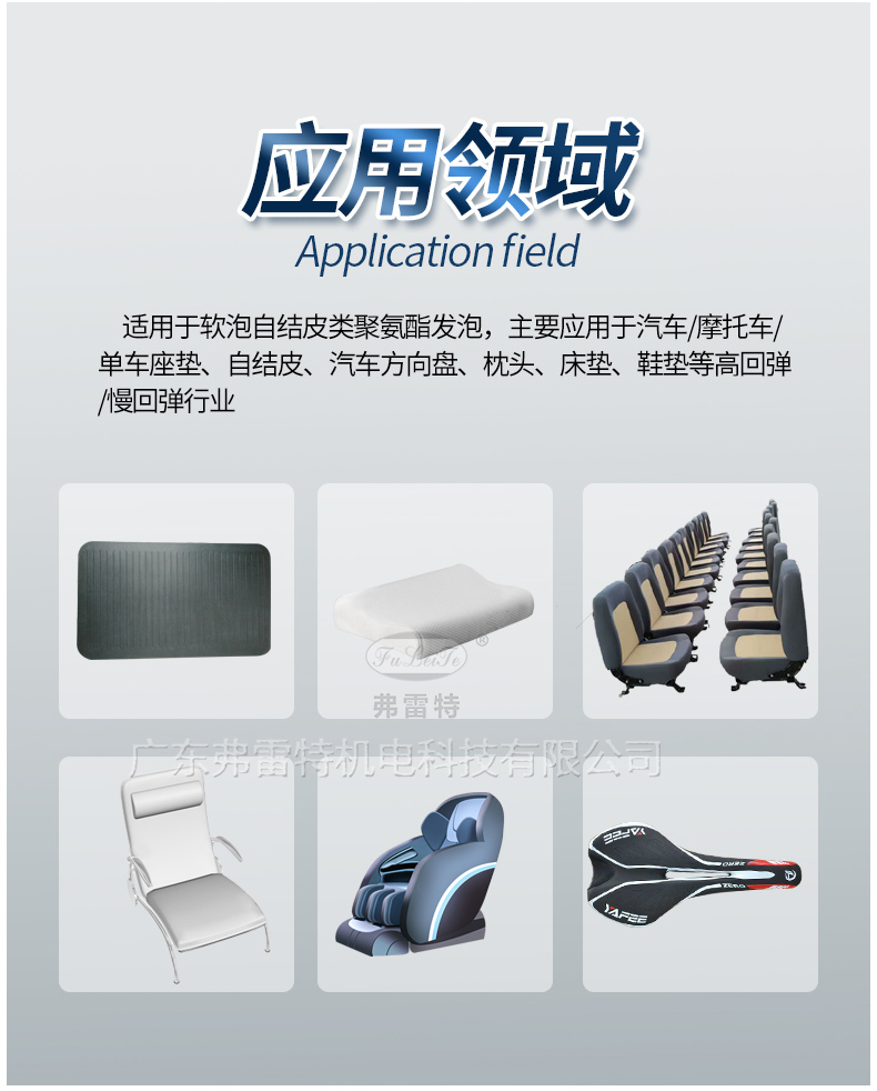 適用于軟泡自結(jié)皮類聚氨酯發(fā)泡,主要應(yīng)用于汽車/摩托車/單車座墊、自結(jié)皮、汽車方向盤、枕頭、床墊、鞋墊等高回彈/慢回彈行業(yè)。