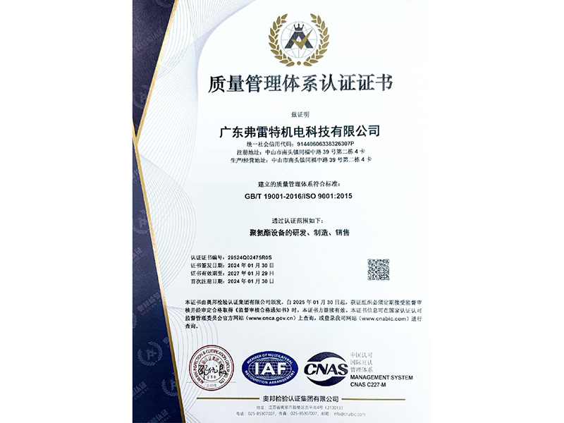 ISO9001認證證書